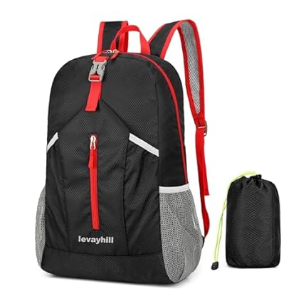 25L Ultralight Lightweight Waterproof HikingBackpack Foldable Travel Camping Hiking Outdoor Sports Backpack Daypack with reflective strips(black)