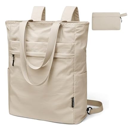 GOLF SUPAGS Foldaway Convertible Tote Backpack Lightweight Nylon Daypack for Women Men City Pack Versatile Backpack for Leisure Travel, Apricot