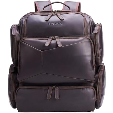 STAR VISTA Colosse 30L Large Vintage Leather Travel Backpack for Men, Fits 18″ Laptop, Multi Pockets, Business or Casual Outdoor Rucksack, YKK Zippers, Dark Brown