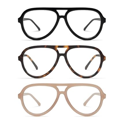 AMOMOMA 3 Pack Retro Oversized Aviator Reading Glasses for Women Men,Classic Large Reader Blue Light Computer Frame AM6111