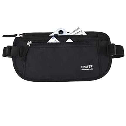 DAITET Money Belt – Passport Holder Secure Hidden Travel Wallet with RFID Blocking, Undercover Fanny Pack (Black)
