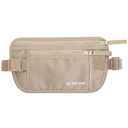 Money Belt for Travel – Hidden Travel Pouch Protect Your Credit and Money With RFID Blocking Passport Holder Waist Wallet (Khaki)