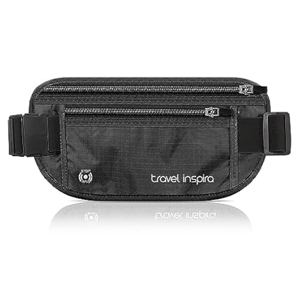 travel inspira Travel Money Belt with Slim Anti-Theft RFID Blocking Passport Holder for Travel Concealed under Clothes for Ultimate Protection of Credit Cards, Cash, Passport & Documents, Black