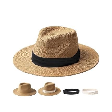 FURTALK Panama Hat Sun Hats for Women Men Wide Brim Fedora Straw Beach Hat UV UPF 80+