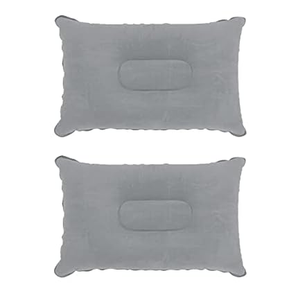 2 Pack Ultralight Inflatable Pillow Small Squared Flocked Fabric Air Pillow for Beach Hiking,Camping,Traveling,Napping,Desk Rest,Neck &Lumbar Support(Gray)