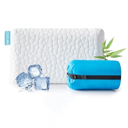 Travel Pillow Camping Pillow Small Cooling Gel Memory Foam Pillow, Compressible Medium Firm, Breathable Cover, Ideal Backpacking Hiking, Airplane and Car