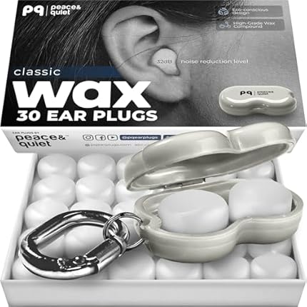 Peace&Quiet PQ Wax Ear Plugs for Sleeping – 30 Silicone Wax Earplugs for Sleeping and Swimming, Gel Ear Plugs for Noise Cancelling, Sound Blocking Level of 32 Db (30 Pillows), Color: White