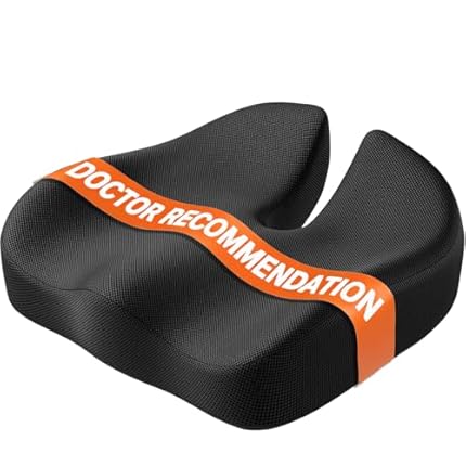 Seat Cushion for Office Chairs – Tailbone, Coccyx Pain Relief – Butt, Pressure & Sciatica Relief – Gaming, Wheelchair, Car & Desk Pillow, Black