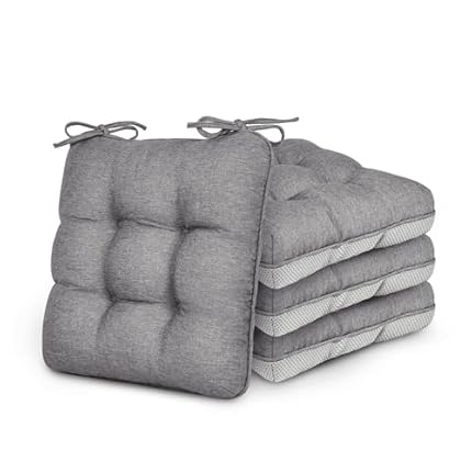 Love’s cabin Memory Foam Chair Cushions Set of 4, Outdoor/Indoor Chair Pads for Dining Chairs 4 Pack, Seat Cushions for Kitchen, Dining Room, Office, Patio Chairs, 15.5″x15.5″x3.5″ Grey