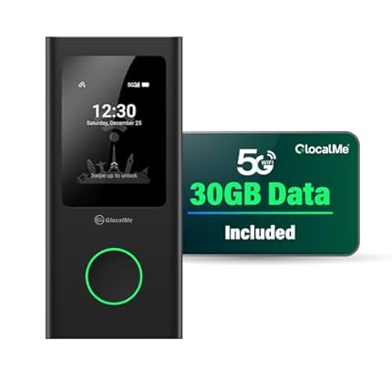 GlocalMe Numen Air 5G Hotspot with 30GB US/CA/MX Data 60Days, Portable WiFi Hotspot for Travel, Ultra High Speed Mobile Hotspot Device with Touch Screen, No SIM Card Required, 16 Connected Devices