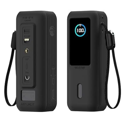 Silicone Case for Anker Laptop Power Bank (25,000mAh 165W) 1/4″ Nut Hole,SD/SIM Card Storage, Display Protection&Dustproof, Travel Protective Cover Compatible with Anker Power Bank 165W (Black)