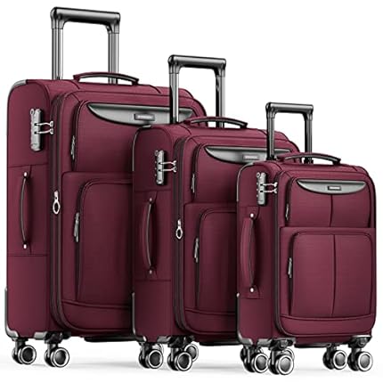 SHOWKOO Luggage Sets 3 Piece Softside Expandable Lightweight Durable Suitcase Sets Double Spinner Wheels TSA Lock Wine Red (20in/24in/28in)