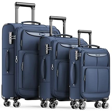SHOWKOO Luggage Sets 3 Piece Softside Expandable Lightweight Durable Suitcase Sets Double Spinner Wheels TSA Lock Blue (20in/24in/28in)