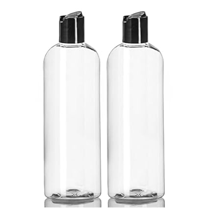 ljdeals 16 oz Clear Plastic Empty Bottles with Black Disc Top Caps, Squeezable Refillable Containers for Shampoo, Lotions, Cream and More Pack of 2, BPA Free, Made in USA