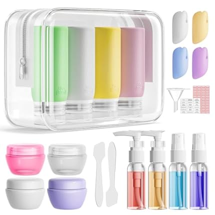 Muslish 21 Pack Leak Proof Silicone Travel Bottles Set, TSA Approved Containers for Toiletries, Travel Size Accessories and Shampoo Conditioner Bottles with Toiletry Bag (BPA Free)