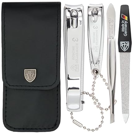 3 Swords Germany – Brand Quality 4 Piece Manicure Pedicure Grooming kit Set for Professional Finger & Toe Nail Care Tweezers File Clipper Fashion Leather case in Gift Box, Made by 3 Swords (77211)
