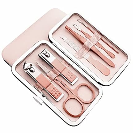 7pcs Manicure Set, Nail Clippers Kit, Stainless Steel Manicure Kit, Nail Clipping Tools Portable Travel Grooming Kit, The Best Gift with Luxurious Case(Rose Gold)