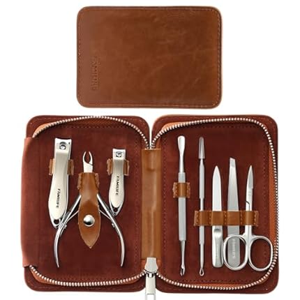 FAMILIFE Manicure Set, Nail Clippers Pedicure Tool, 8 pcs Stainless Steel Manicure Kit Professional Grooming Tool, Nail Kit with Portable Brown Leather Travel Case Luxury Gifts for Men