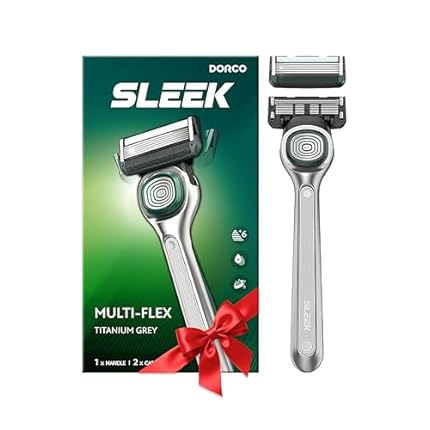 DORCO SLEEK 6 Blade Razor for Men with 2 Cartridges | Men’s Cartridge Razors with Razor Handle and Smooth Shaving Blades | Men’s Razors with Multi-Flex Technology
