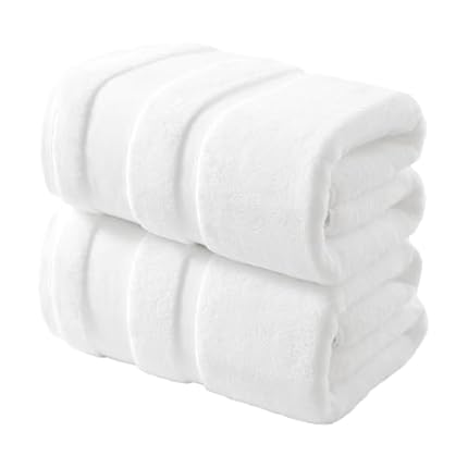 REDKISS 100% Cotton Bath Towels Set of 2, Extra Large Bath Sheets 35 X 70 Inches, 800 GSM, Quick Dry, Ultra Soft & Super Absorbent Bathroom Towel Sets for Bathroom, Gym, Spa, Pool & Hotel, White