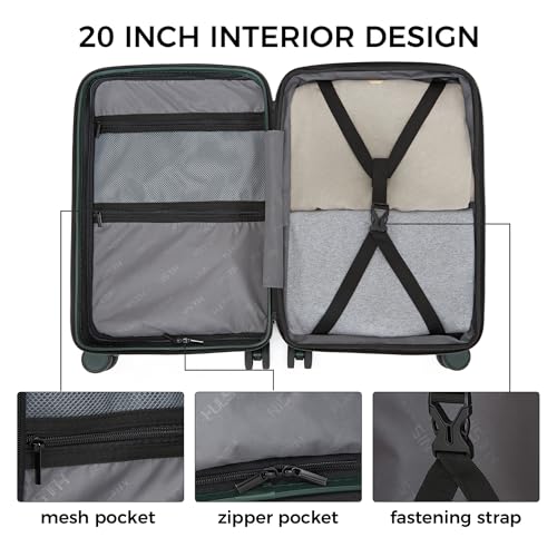 20 Inch Expandable Carry on Luggage, Hardside Lightweight Spinner Suitcase TSA Lock, 22x14x9 Airline Approved Hard Shell Expandable Travel Luggage with 20% More Capacity (Green, 20 Inch)