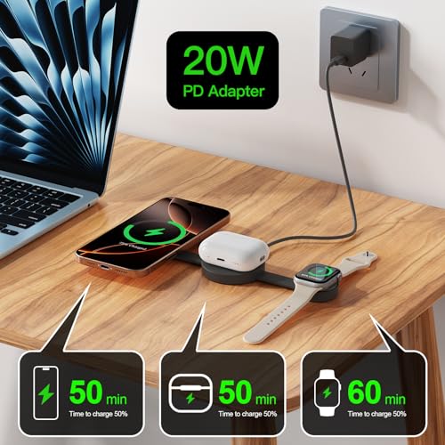【Excellent Warranty and Customer Service】 You’re going to receive a (2025)3-in-1 charging station with Mag-Secure, a PD20W charger, a1 meter type-c charging cable ,OUOTOO pays attention to quality issues and ensures that the magnetic suction wireless charger you receive has undergone a series of quality testing processes, Enjoy peace of mind with our 3 years limited warranty, ensuring you won’t worry about returns. If needed, we can provide solutions