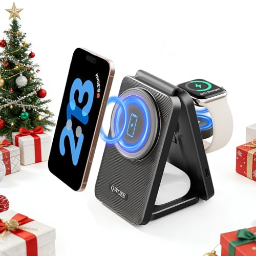 3 in 1 Foldable Wireless Charger:Magnetic to i phone charger for more than one devices A pple;easily adjust the vertical or horizontal angle, precise adsorption;non-slip;rapid full charge in 2.4 hours;provide you with a stable charging experience.