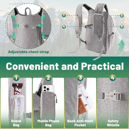20L Small Hiking Backpack for Women – Lightweight Packable Backpack for Men, Waterproof Foldable Daypack for Travel, Hiking, and Daily Use, Adjustable Chest Strap Multiple Pockets, Gray