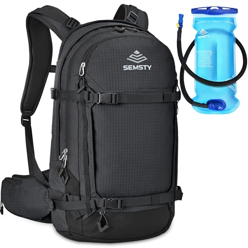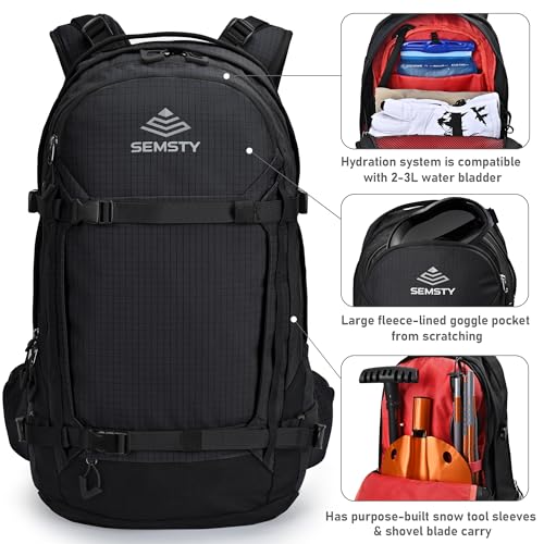 【Enough Storage & Multi-pocket】 Semsty ski and snowboard backpack measures in at 11.4*6.7*20.9 inch. Stay organized with 8 functional divider pockets to keep your whole essentials safe. With a fleece-lined goggle pocket, back-panel access to the main compartment, and a front access pocket designed to hold a shovel & snow tools. The internal compartment in the main pocket is suitable for 2L-3L bladder. This 25L backpack is perfect for crossing over from the resort and into the backcountry