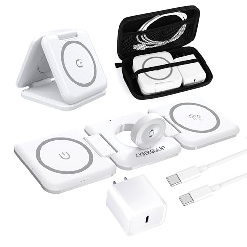 3 in 1 Apple Charging Station for iPhone Airpods iWatch – Travel Charger for Multiple Devices, Portable Foldable Charging Station – Magnetic iPhone Charger with Adaptor&Case (White)