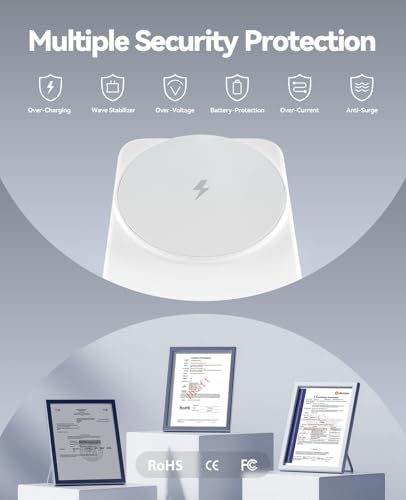 Strong Magnetic Alignment|Protected & Stable Charging: Built-in powerful N54 magnets and compatible with Mag-Secure charger, The foldable charging pad’s strong magnetic suction ability allows your device to be easily aligned with the charging area, Note: Non-Mag-Secure cases may weaken magnetic adsorption. For stronger attachment, we recommend the usage of a Mag-Secure-compatible case