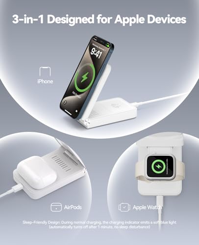 3-in-1 Magnetic Charging station for Apple Devices: Charge your iPhone, AirPods, and Apple Watch concurrently, all even as enjoying the versatility of the built-in adjustable stand. (Note: For optimal charging, use the provided 30W USB-C PD wall charger.) For iPhone 17 16 15 14 13 12 Plus /Pro/ Pro max/Air (Note: Magnetic suction function does not beef up iPhone 11 to 8 Series), It is also compatible with Apple Watch Ultra 11 10 9 8 7 6 5 4 3 2 & AirPods 2/3/4 Pro (Note: only beef up AirPods with magnetic devices)