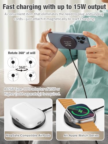 【Universal Compatibility | iPhone 12-17, All Apple Watches & AirPods】 Works seamlessly with your whole Apple ecosystem! Specifically designed for iPhone 17,16, 15, 14, 13, 12 series (including Pro, Pro Max, Plus, and mini models), all generations of Apple Watch (Series 2-9, SE, Ultra), and AirPods Pro 3/2/1, AirPods 3 & 4 (with magnetic or Qi-enabled case). Even non-magnetic Qi devices can charge the usage of a magnetic ring adapter (not included). It’s the only charger your Apple family will ever need.