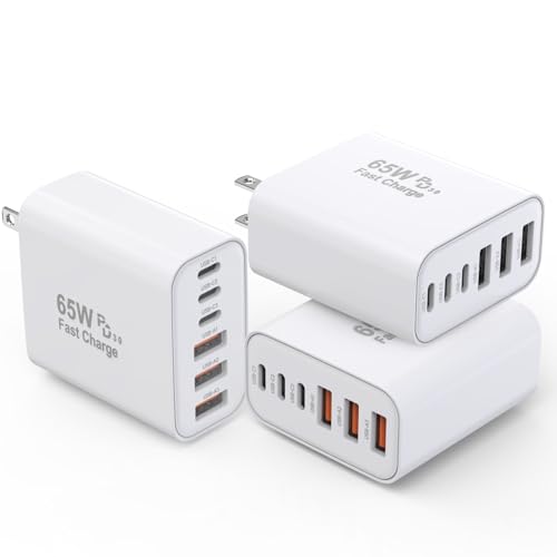 3 Pack 65W GaN Type C Wall Charger Block,6-Port Fast Charging Block,PD USB C Plug Adapter+QC Plug Compatible with Apple iPhone 17/17 Air/16E/16Pro Max/16Plus/16/15/14/13/12/11/XS Max,iPad Pro,AirPods