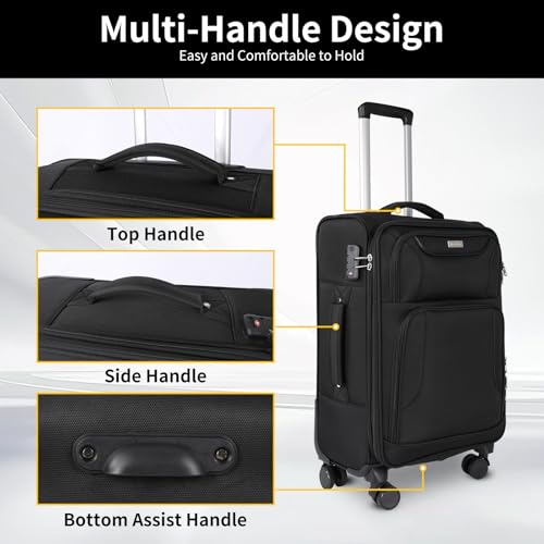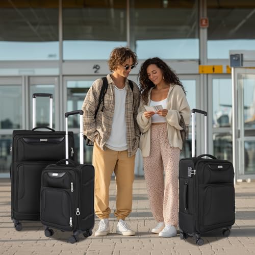 3-Piece Softside Expandable Luggage Set with Front Open Pocket, Lightweight and Durable Oxford Fabric Suitcase Set with TSA Lock (Black, 20in/24in/28in)