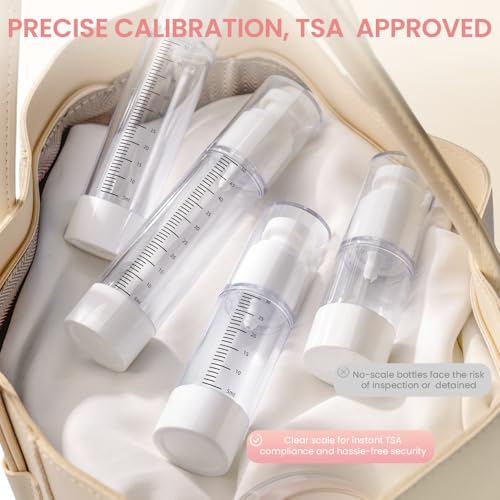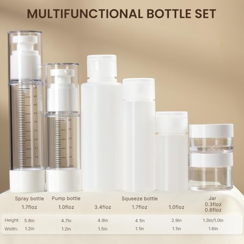 【Clear Graduated Bottles with Vacuum Tech】The spray and lotion bottles are transparent with measurement markings to track remaining product. Their vacuum pumps dispense every drop without residue, eliminating waste and cleanup