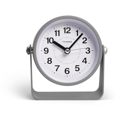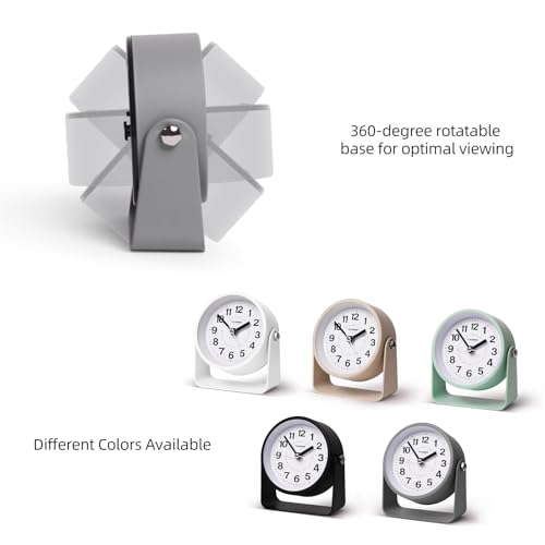 Analog Alarm Clock, Silent Non-Ticking Quartz Movement, Battery-Operated with Snooze & On-Demand Light, Easy to Set Gentle Wake Bedside Desk Clock, Ideal for Home, Travel, Office (Gray)
