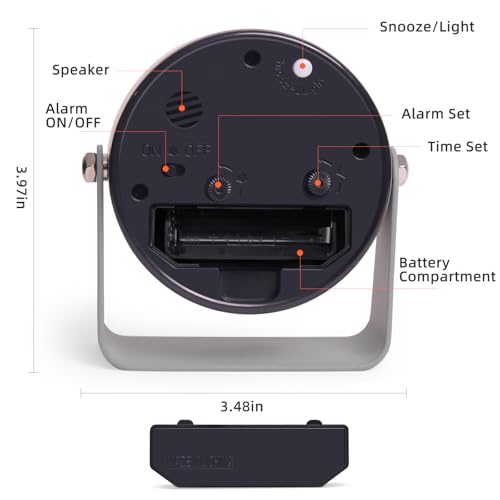 Compact & Portable – This small, round alarm clock measures just 1.6 x 1.4 x 1.4 inches and weighs a mere 7.8 oz. Perfect for compact spaces like nightstands and desks, and portable enough for shuttle. Operates on one AA battery (not included).