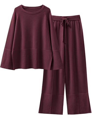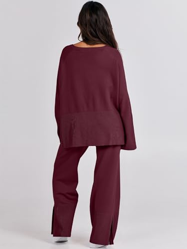 ANRABESS Womens 2 Piece Outfits Oversized Knit Sweater Set Wide Leg Pant Cozy Lounge Matching Pajama Sets 2025 Trendy Clothes