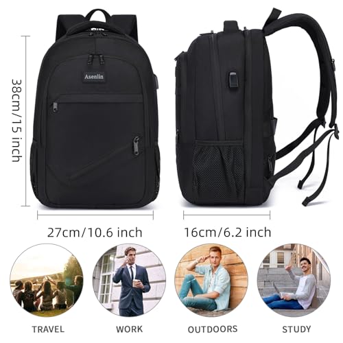 Asenlin Travel Laptop Backpack for Women & Men,Water Resistant Business Slim Sturdy Laptops Backpack with USB Charging Port,Fits 15.6 Inch Notebook College School Computer Bag-Black