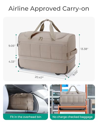 Airplane Approved: Trip friendly carry-on rolling duffle bag meet the size requirements of most International Air Transport Association flights, underseat also the overhead compartment