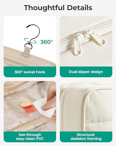 𝐂𝐨𝐧𝐯𝐞𝐧𝐢𝐞𝐧𝐭 𝐃𝐞𝐬𝐢𝐠𝐧: Commute bag for toiletry stow-away 360-degree swivel non-slip metal hook for versatile hanging options, carry maintain doubles as its hanging strap, two-way zipper closure for quick get right of entry to