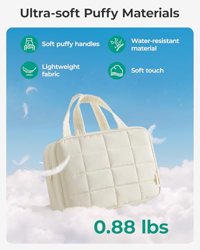 𝐏𝐮𝐟𝐟𝐲 𝐌𝐚𝐭𝐞𝐫𝐢𝐚𝐥𝐬: Hanging Toiletry Bag is made of puffy fabric and weighs only 0.88 lbs. Super soft, lightweight nylon fabric provides all-day carry comfort