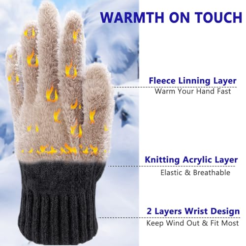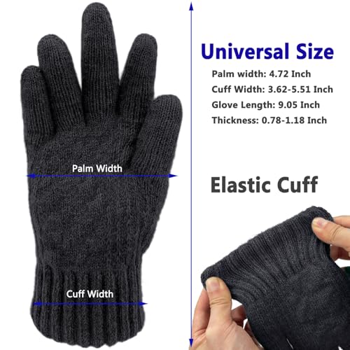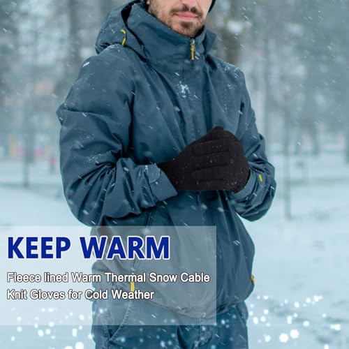 Beurlike Wool Winter Gloves for Men Women Fleece lined Touchscreen Warm Thermal Snow Cable Knit Gloves for Cold Weather Gift