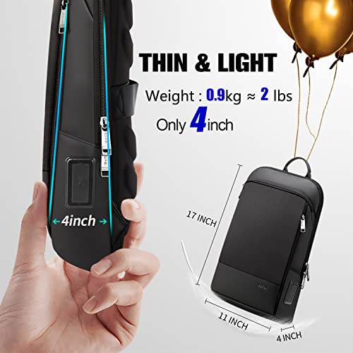 BOPai Slim Laptop Thin Business Backpack with Bottle Holder USB Charging Professional for Men Notebook Work Office Anti Theft Smart Computer 15-15.6 inch Back pack Light Black