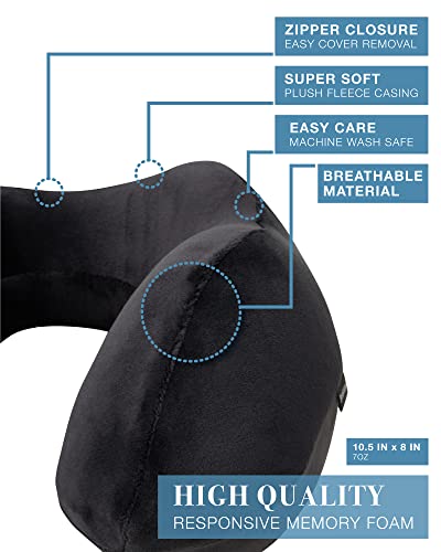 Brookstone Neck Travel Pillow – Lightweight Contoured Memory Foam Stuffable Travel Neck Pillow for Sleeping, Car, & Airplane, Size One Size, Black