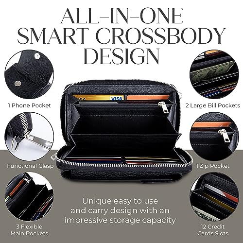 BULL GUARD Crossbody Leather Wallet Phone Purse, Anti Theft and RFID Blocking, Small Elegant Design for Travel