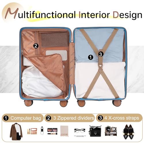 Carry on Luggage with Spinner Wheels, 22x14x9 Airline Approved Carry-on Suitcase, Small Hardside Luggage with TSA Lock,Hard Shell Suitcase,Hard Case for Travel (Blue, 20-Inch)