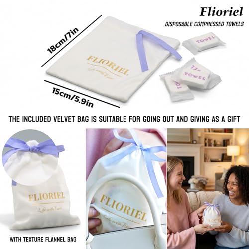 Compressed Face Towels 20 Pack with Flannel Carry Bag, Portable Disposable Washcloth Tablets, Thick & Soft Facial Towelettes for Travel Camping, Hiking, Gym, Makeup & Everyday Use