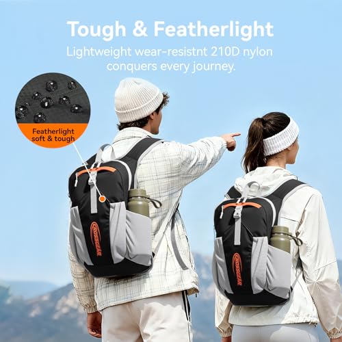 CROSSGEAR 16L RFID Hiking Backpack, Lightweight Foldable Packable Backpack, Small Travel Hiking Daypack for Women Men Black